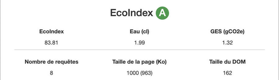 It is part of our broader commitment to reducing the environmental footprint of our digital tools. The site was eco-designed with a strong focus on performance and minimal impact. We reduced its weight by limiting media, optimizing the code, and removing unnecessary features.