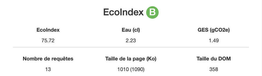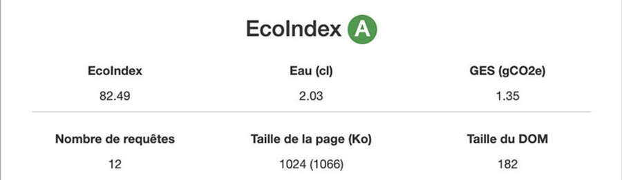 We rely on the EcoIndex methodology developed by the GreenIT.fr collective to assess the website’s environmental performance. This is measured using two types of indicators:
